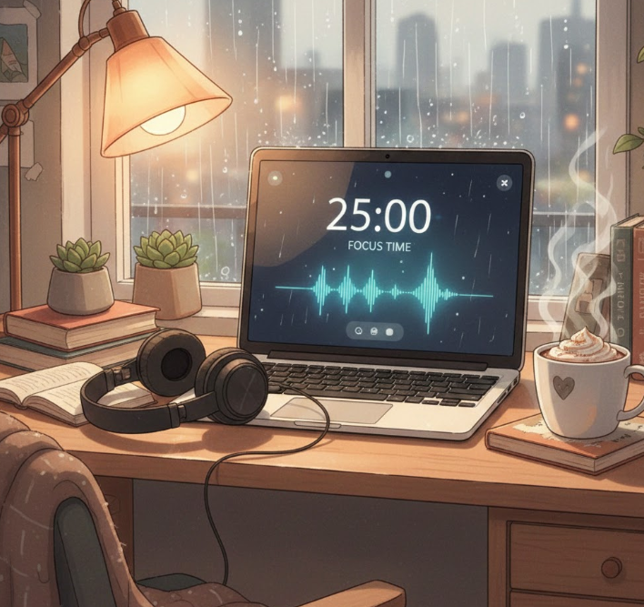 오늘은 뽀모도로 타이머 기능에 더해, 백색소음과 Lo-Fi 사운드를 활용해 여러분의 방을 순식간에 몰입의 공간으로 바꿔줄 온라인 앱들을 추천해 드립니다.